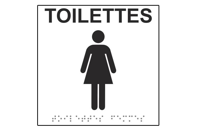 Pictogramme Toilettes femmes Texte et Braille fond blanc