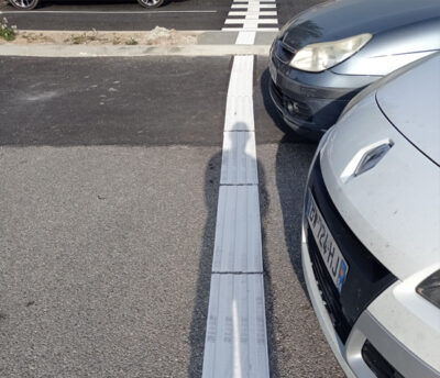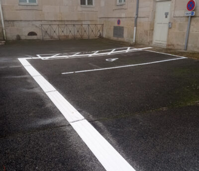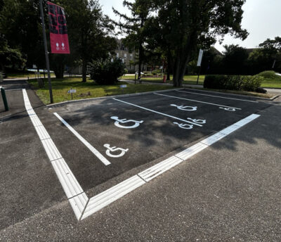 Parmi les dispositifs essentiels figurent les bandes de guidage, destinées à orienter les personnes aveugles ou malvoyantes, ainsi que les places de stationnement PMR, conçues pour garantir un accès sécurisé et autonome.